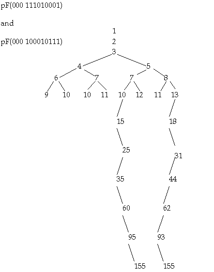 pF(000 111010001) => (1,2,3,5,8,13,18,31,44,62,93,155)