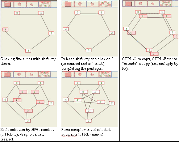 | Make a complete subgraph on selected nodes. | Select nodes, then CTRL K |